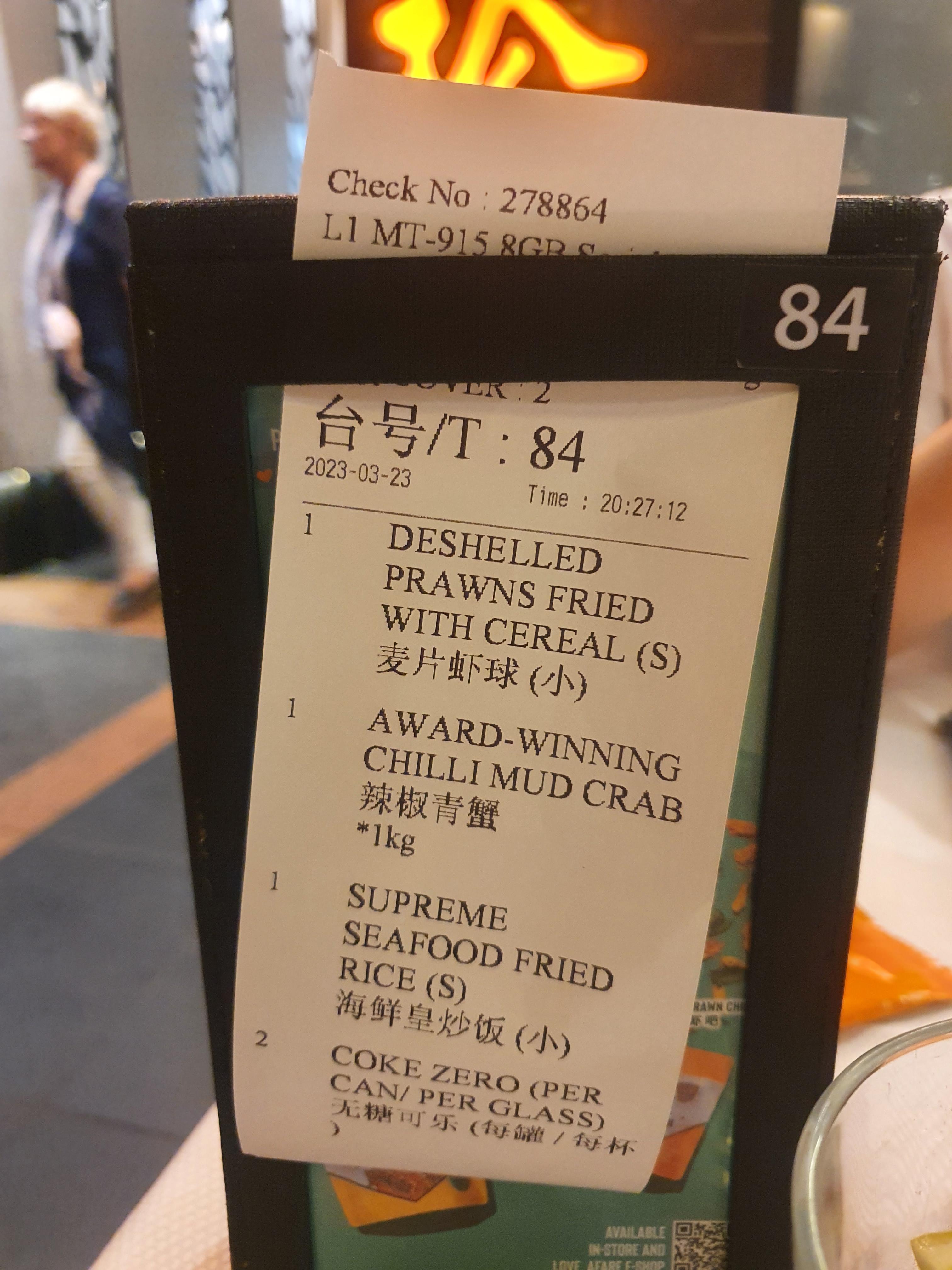 저녁에 점보 씨푸드 리버사이드 포인트 지점에서 칠리크랩을 먹었습니다 ㅎㅎ