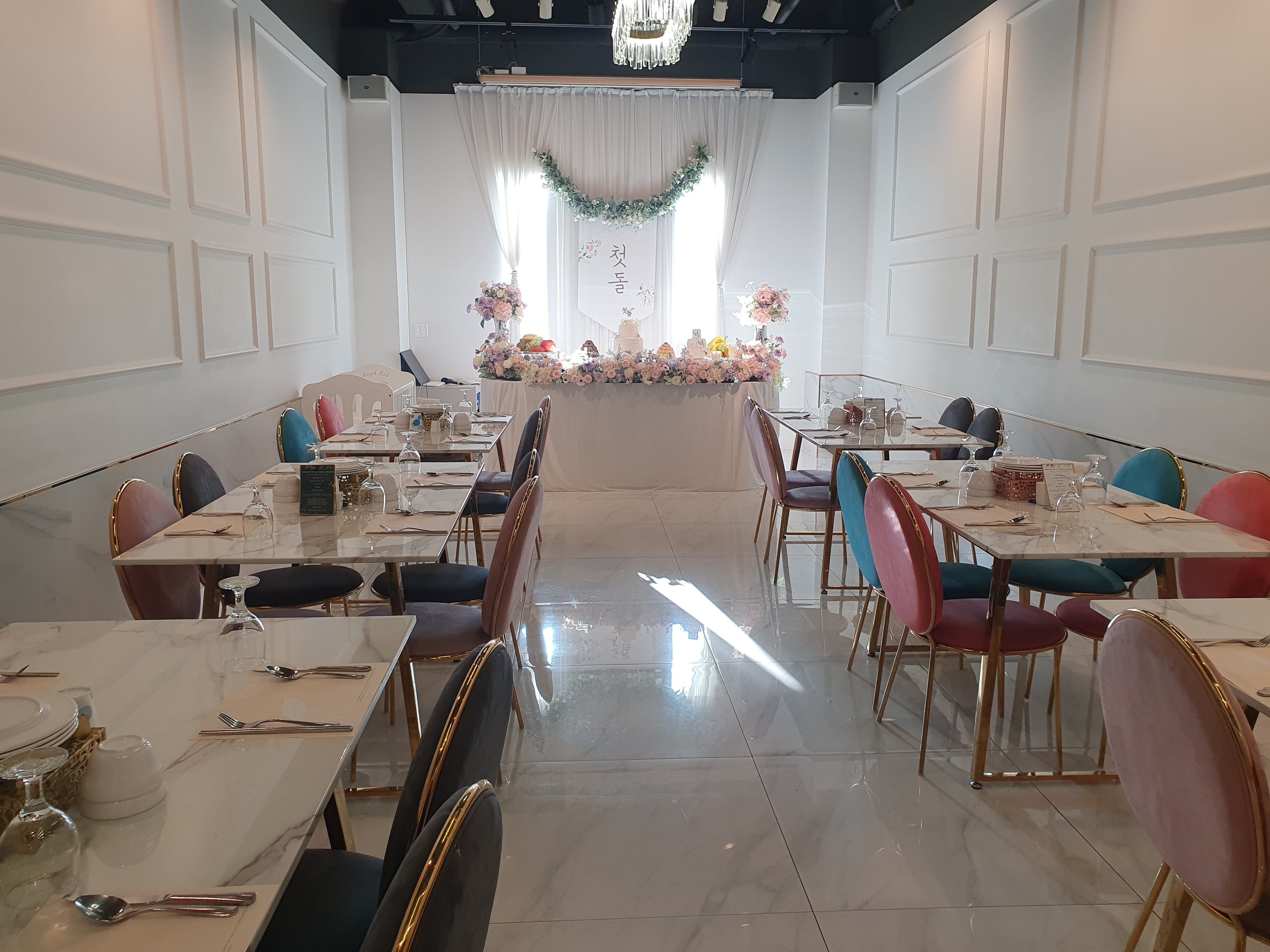 일산 본페뜨에서는 같은 시간에 돌잔치하는 팀이 5팀이 있어요 그래서 홀이 5개로 나눠져있어요